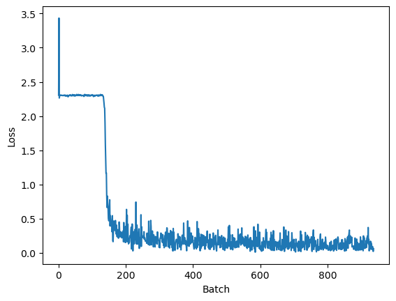 plt.ylabel("Loss")Época: 0 [0/60000 (0%)] Loss: 2.305868